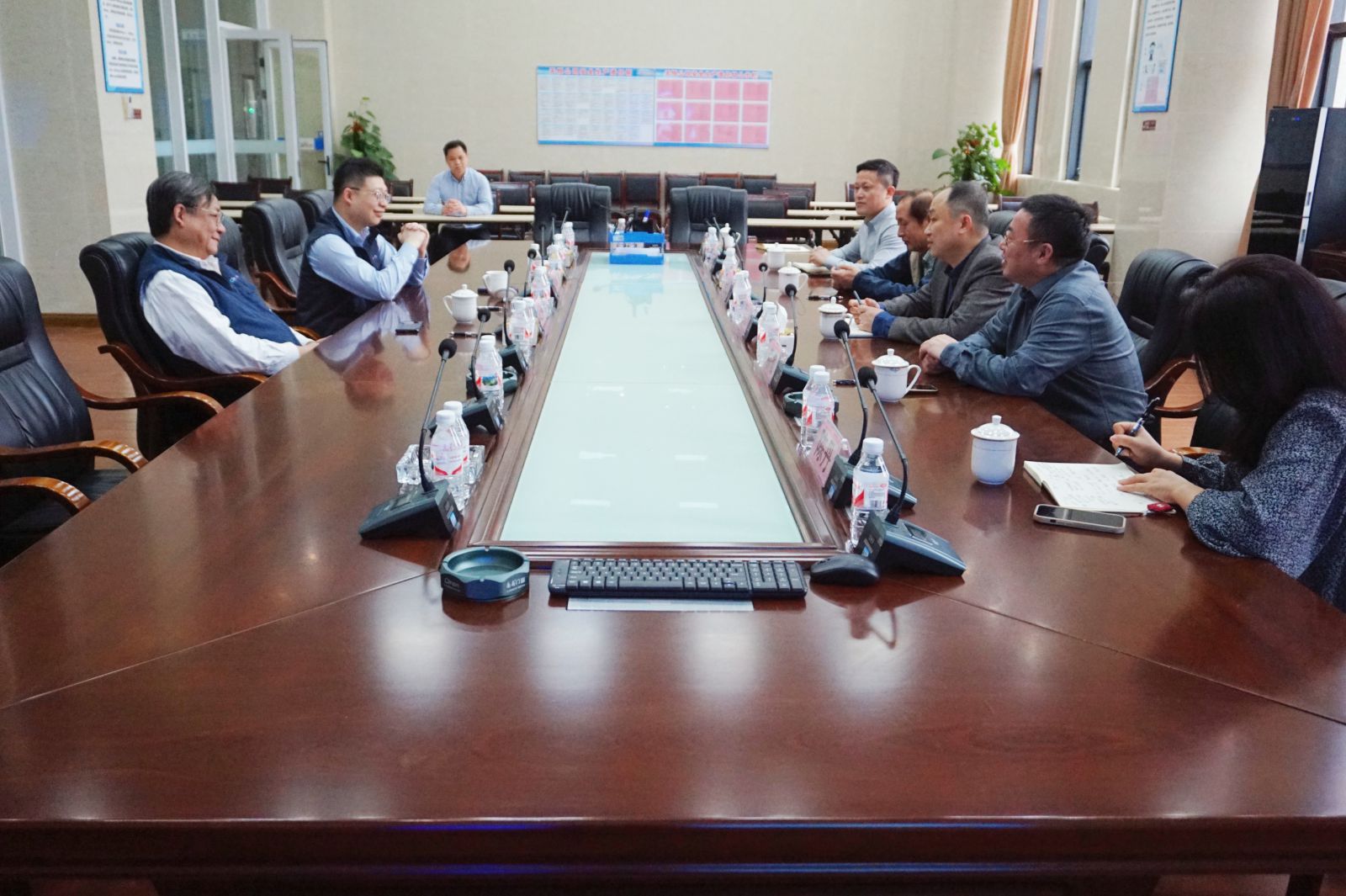 ? ?在蔡海峰的陪同下,中南大學商學院一行分別參觀了公司展廳及車間,隨后雙方開展座談會,就產學研融合、科技成果轉化、搭建聯合培養基地和實習基地等問題進行了深入交流。