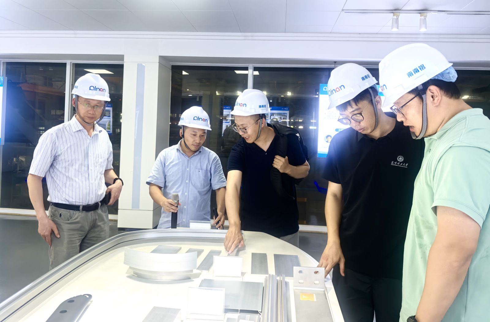 ? 交流活動伊始,公司領(lǐng)導(dǎo)陪同來訪嘉賓參觀了天恒公司及材料事業(yè)部的展廳、生產(chǎn)車間。在展廳內(nèi),公司領(lǐng)導(dǎo)向嘉賓介紹了公司產(chǎn)品結(jié)構(gòu)、產(chǎn)品用途、產(chǎn)能規(guī)模及市場銷售等情況,重點介紹了公司戰(zhàn)略產(chǎn)品新能源汽車鋁合金材料及鋁零組件產(chǎn)品。