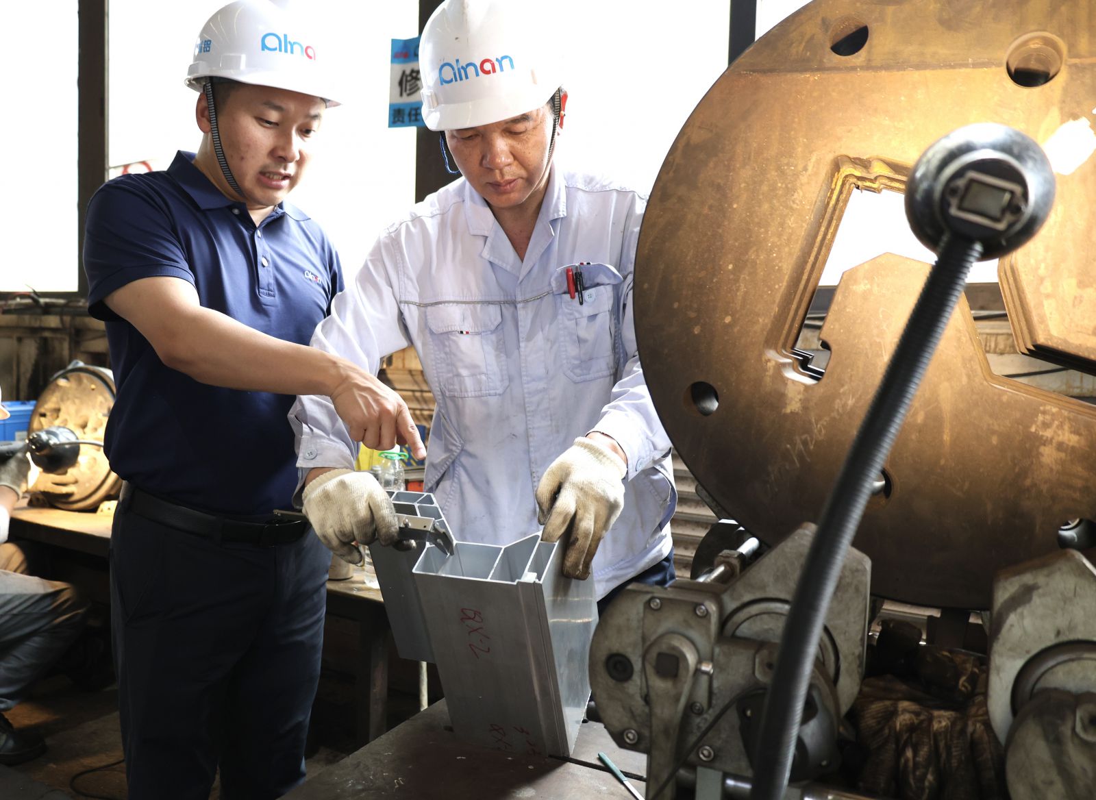 ? ? ? 在管理體系建設(shè)上,王俊著力推動經(jīng)驗成果的標(biāo)準(zhǔn)化、體系化落地。他初步建立擠壓工序“一模一速度”、“一模一米重”生產(chǎn)管理體系,以單套模具為管控單元,精準(zhǔn)匹配對應(yīng)生產(chǎn)速度與米重控制標(biāo)準(zhǔn),實現(xiàn)擠壓生產(chǎn)過程參數(shù)精細(xì)化、標(biāo)準(zhǔn)化管控,有效提升產(chǎn)品尺寸精度與生產(chǎn)穩(wěn)定性;牽頭搭建適配高端家裝型材等多品類生產(chǎn)的精細(xì)化管理體系,創(chuàng)新推出“一戶一噴”“一戶一穿”“一戶一包”等精細(xì)化生產(chǎn)模式,有效破解個性化訂單生產(chǎn)效率的難題,讓定制化生產(chǎn)實現(xiàn)規(guī)模化、高效化運轉(zhuǎn)。