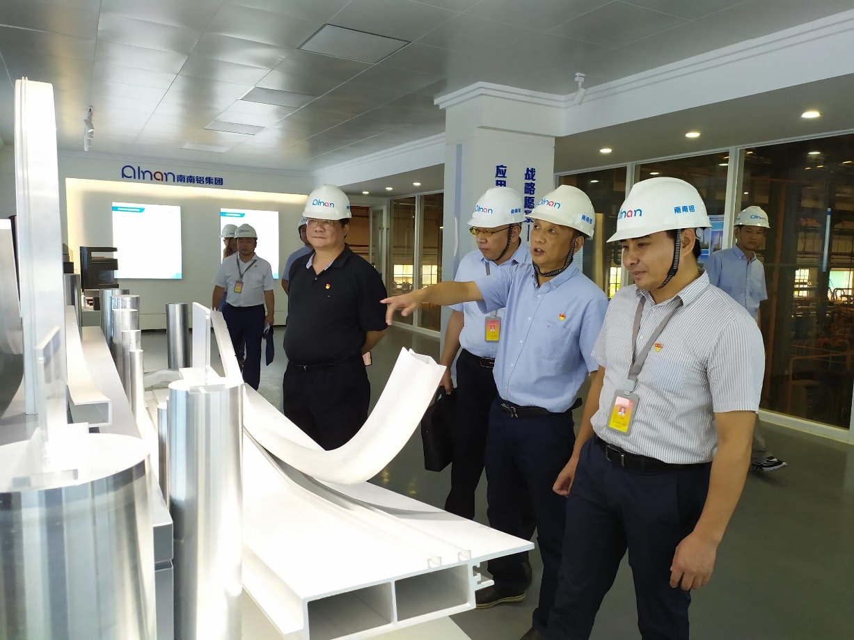 ? ? 下午15時,鄭玉林帶領馬躍騰等人依次參觀了南南鋁汽車組件事業部產品展廳、智能制造車間、汽車材料事業部產品展示區和生產制造車間,并詳細介紹南南鋁業公司的轉型發展歷程、創新體系建設、產品市場應用及車間生產運行等情況。
